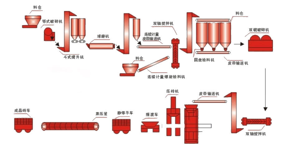 輕質(zhì)磚設(shè)備生產(chǎn)工藝流程:
