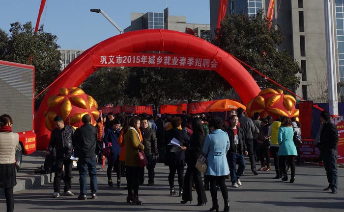 鞏義市2015年城鄉(xiāng)就業(yè)春季招聘會-杜甫機械招聘現(xiàn)場十分火熱