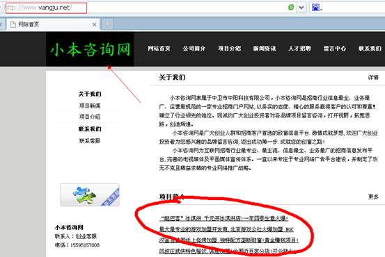 點擊進入發(fā)現(xiàn)是做的一個單頁面。里面的內(nèi)容可夠吸引客戶了,從網(wǎng)站整體來看沒有什么不對勁的地方,但是在往上面看。就發(fā)現(xiàn)問題了。